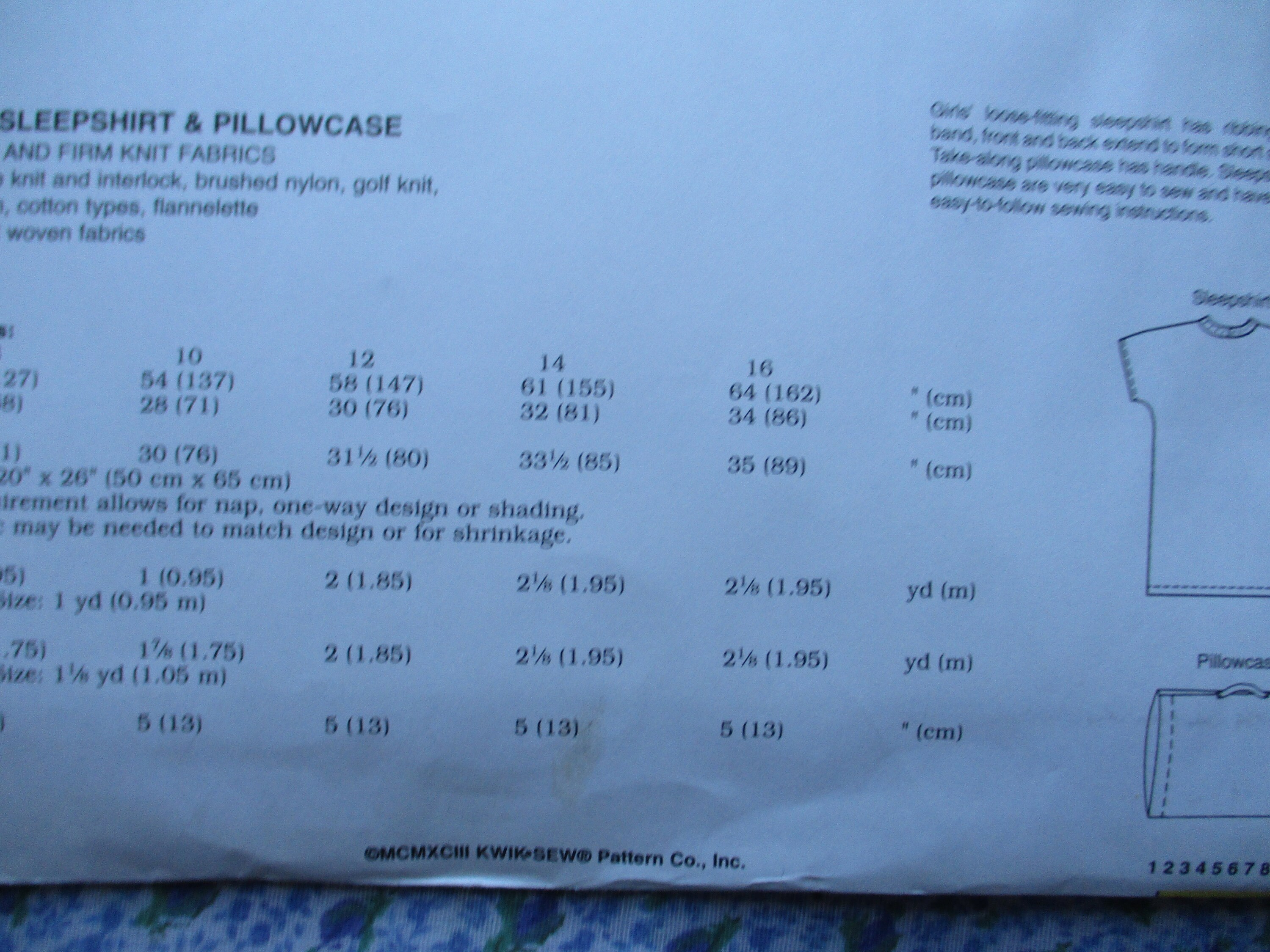 Kwik Sew 2322 Girls Sleepshirt Pillowcase